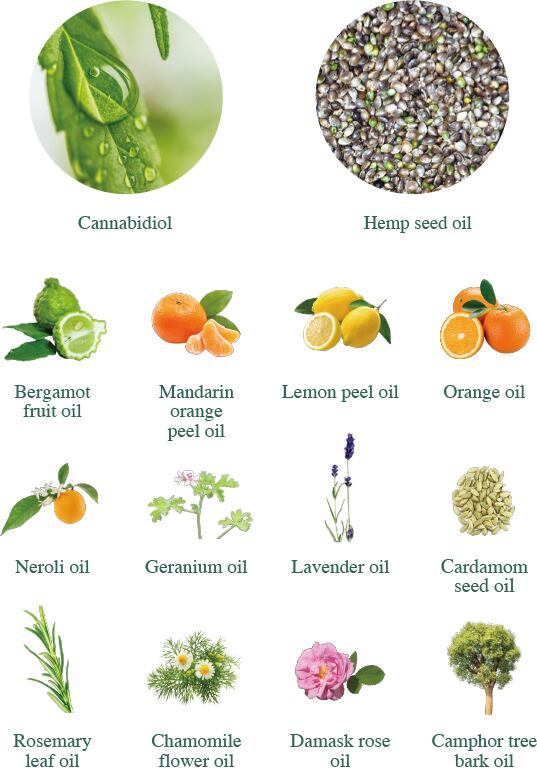 お肌が本来持っている力を引き出してくれるカンナビジオールと保湿力に優れたアサ種子油を組み合わせ、さらにカンナビジオールの力を押し上げてくれる柑橘系を中心としたエッセンシャルオイルを配合しました(ベルガモット果実油、マンダリンオレンジ果皮油、レモン果皮油など)。
